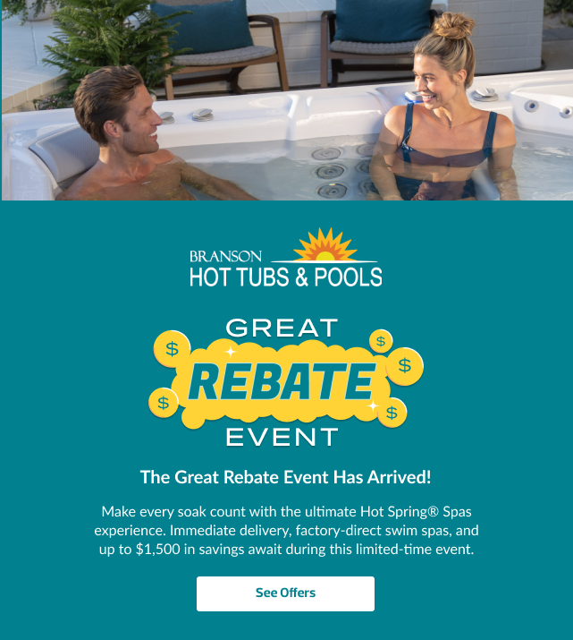 At Branson Hot Tubs, we bring spa living to life. From energy-smart salt water systems to advanced massage jets, find the perfect spa built for your lifestyle. Let’s make your backyard your own personal paradise.